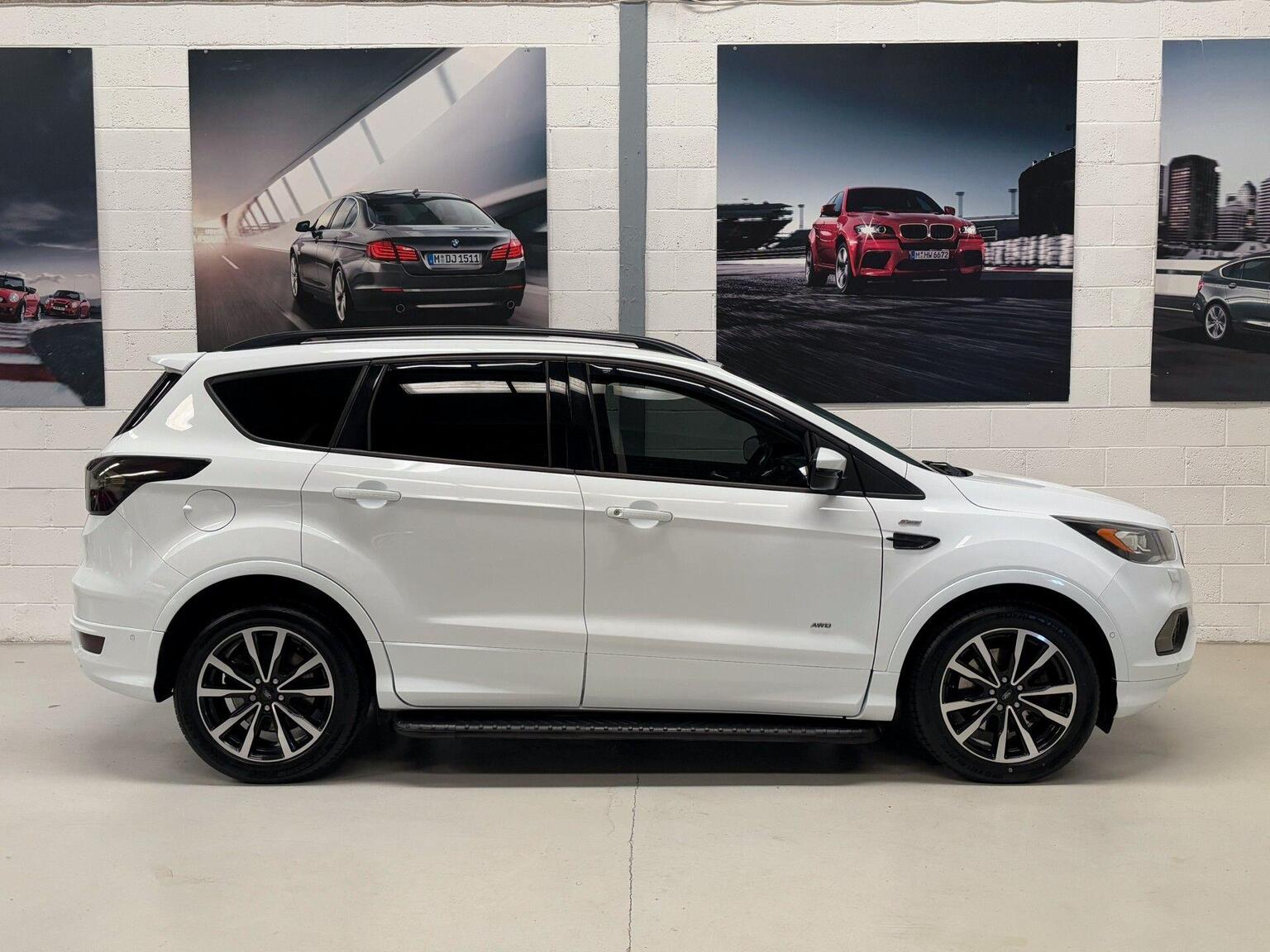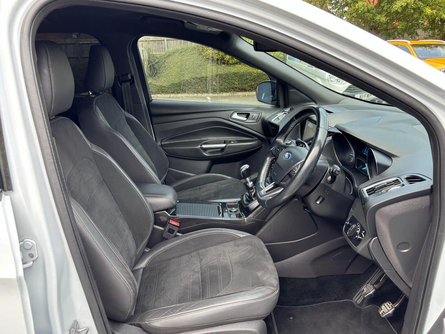 SP Cars are proud to offer this beautiful 2017 Ford Kuga 2.0 TDCi EcoBlue ST-Line AWD Euro 6 (s/s) 5dr SUV. Just taken in p/x. Presented in Frozen white, just two previous owners from new, Only 59,000 miles with Ford dealership service history at 3k, 11k, 21k, 28k, 36k and 47k then independant at 56k on 9th April 2025. Hpi Clear. 12 months MOT issued upon sale. Four new tyres recently fitted. EURO 6 Emissions and ULEZ Compliant. All part exchanges considered. Check out our 5* reviews and a full walkaround video on our website www.spcars.net. Please contact us directly on 07976 705338 or email us at sales@spcars.net if you wish to reserve any of our vehicles. We are FCA regulated and can arrange competitive finance packages to suit your needs. we have the V5, complete handbook pack, 2 keys, locking wheel nut, tool kit and spare wheel. Viewing is by appointment only please. Please ring before travelling to avoid disappointment. Check Out This Spec